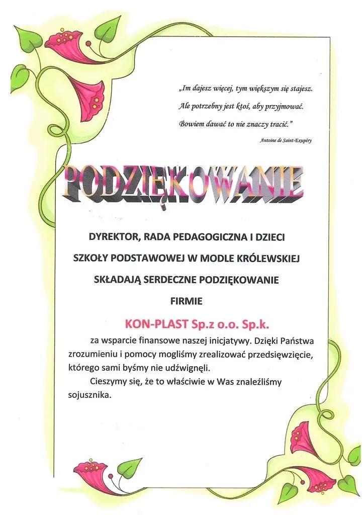 Podziękowanie - Szkoła Modła Królewska